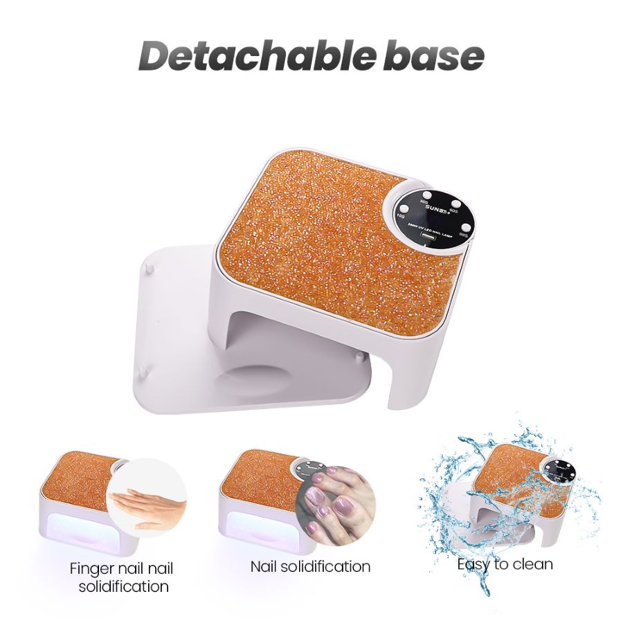 Non seulement la lampe à ongles SUN 90 W est efficace et fonctionnelle, mais elle est également conçue dans un souci de commodité. Sa base magnétique amovible permet un nettoyage sans effort et une utilisation conviviale en pédicure. Sa construction légère et portable le rend parfait pour les professionnels des ongles en déplacement ou les bricoleurs qui souhaitent des résultats dignes d'un salon, où qu'ils aillent.